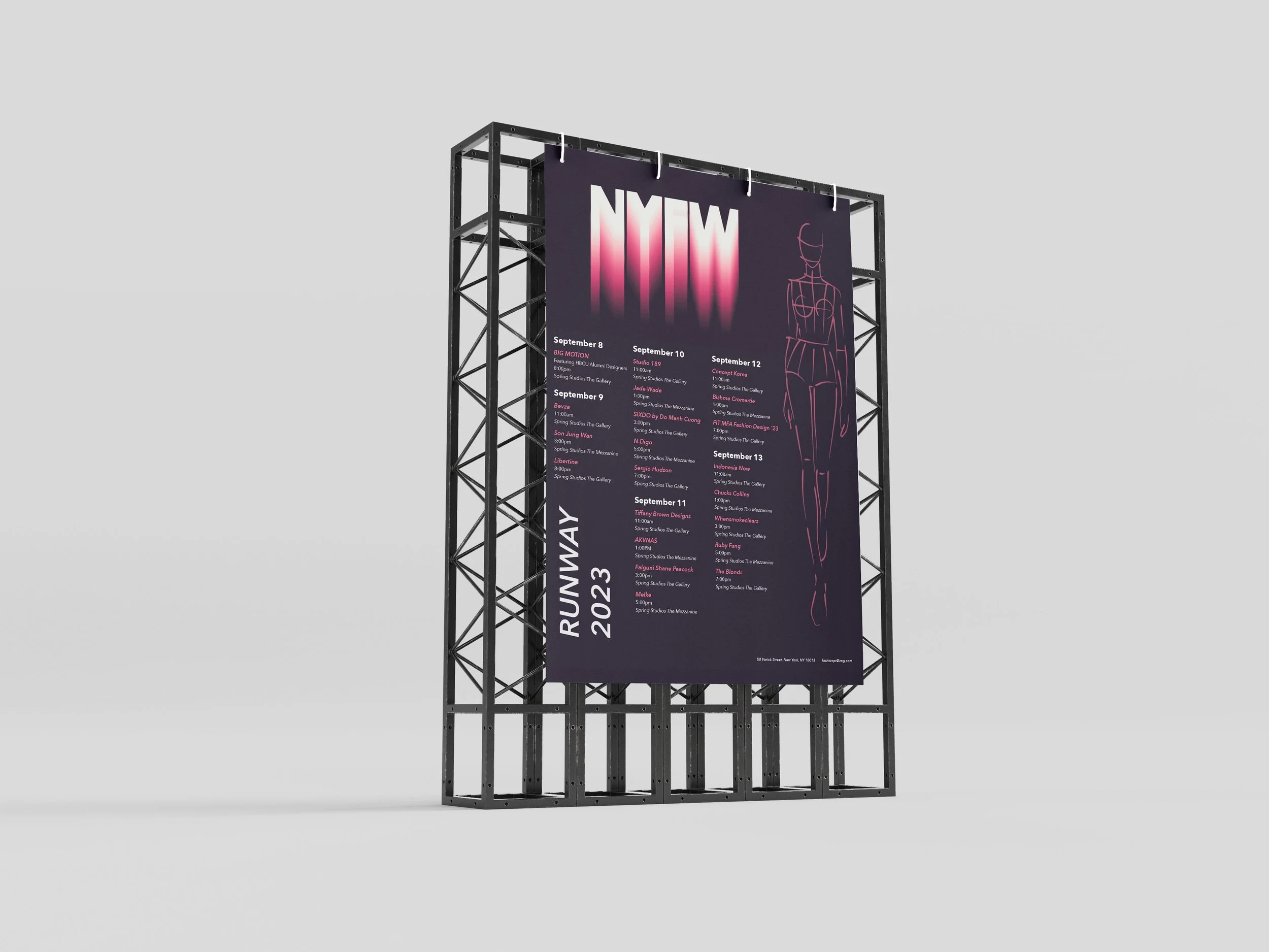 In crafting this composition, I aimed to embrace a lively color palette that revolved around various shades of purple and pink. In my younger years, I had a fondness for wearing the color pink, which naturally led me to associate this vibrant and feminine hue with the world of fashion and fashion events.