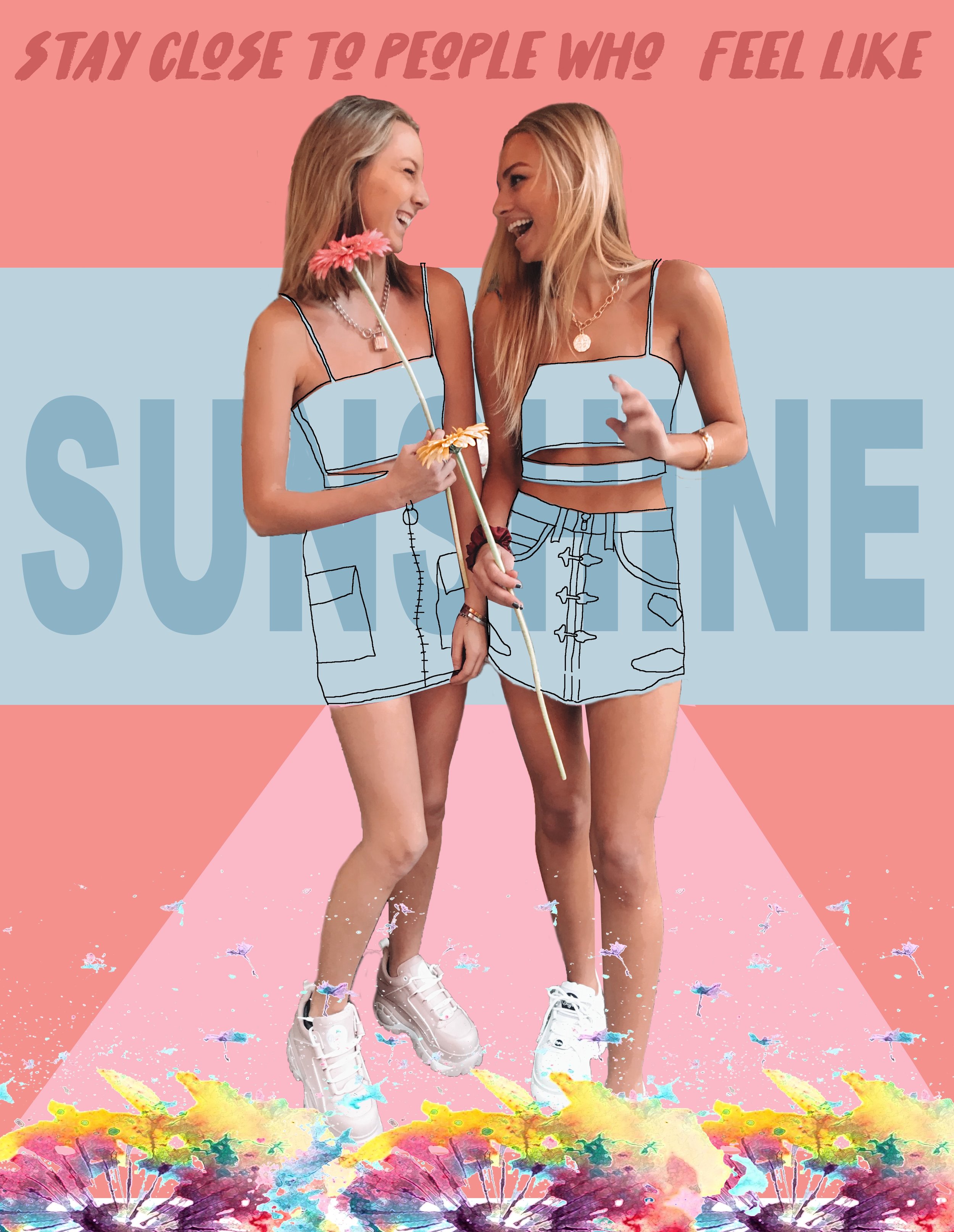 The collection began only with “Make Waves” which was the start to a bigger picture. As you will see all the compositions carry a similar style which includes a saying, intricate line work in replacement of specific clothing pieces, and a vibrant color palette to compliment the mood and story.